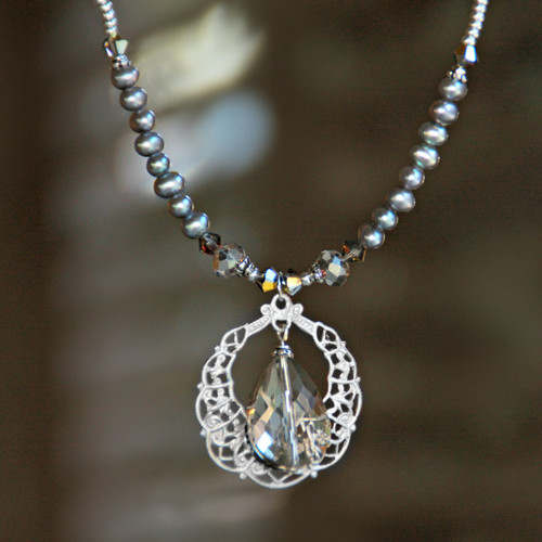 When you see this necklace in person the beutiful platinum crystal teardrop